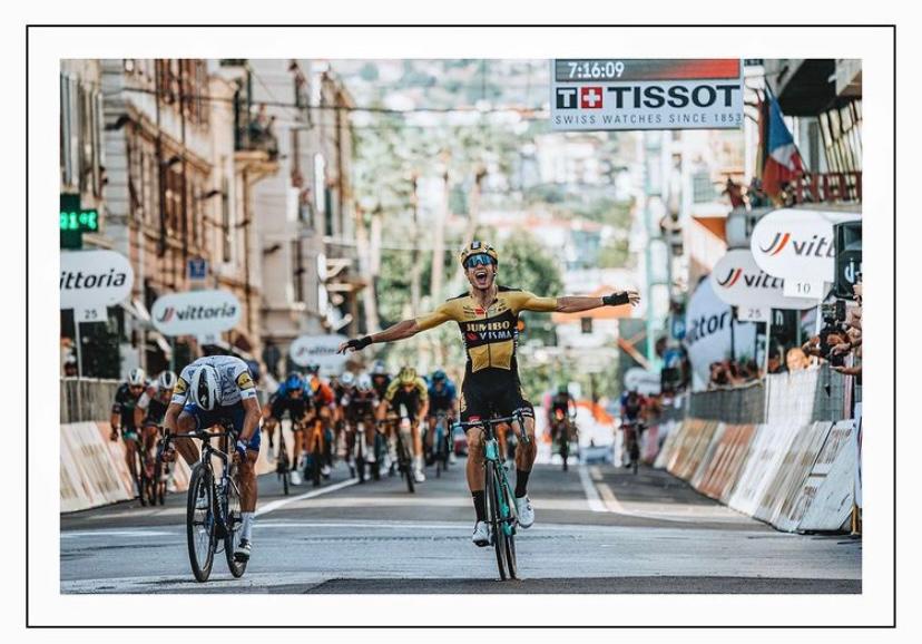 Na 7 uur, 16 minuten en 9 seconden klopte Wout van Aert zijn medevluchter Julian Alaphilippe in de sprint. Foto: Cyclingimages, Instagram